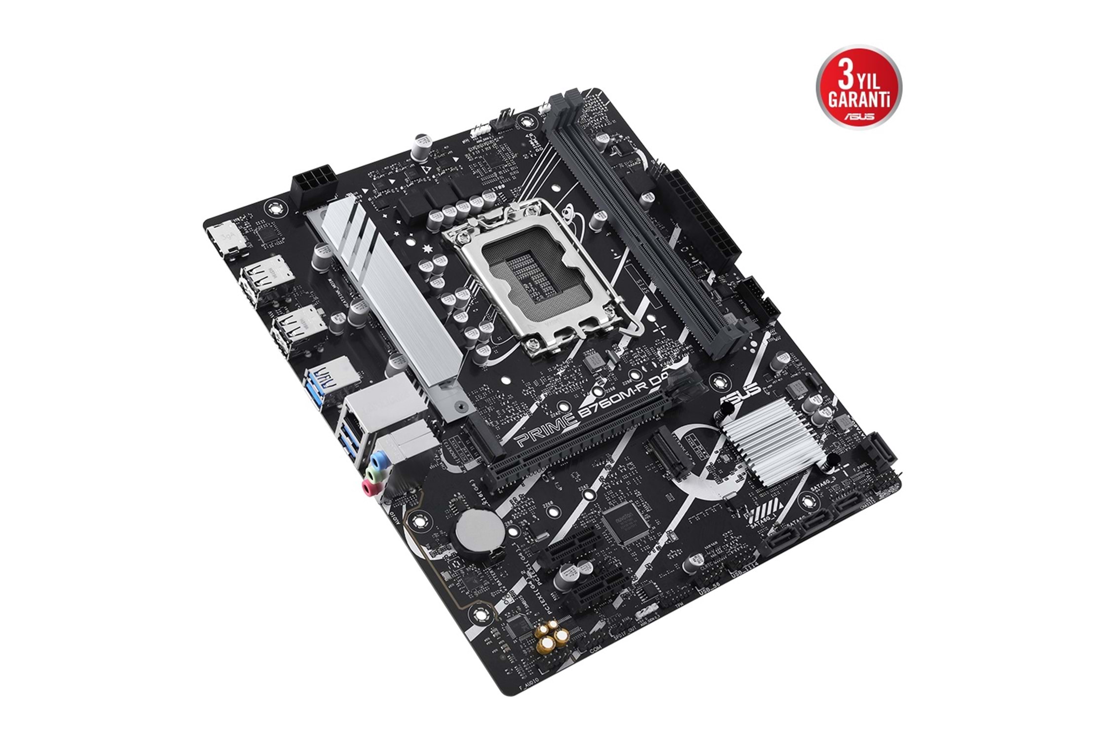 ASUS PRIME B760M-R D4 Intel® B760 LGA 1700 micro-ATX anakart, PCIe 4.0, iki adet PCIe 4.0 M.2 yuvası, DDR4, Realtek 2.5Gb Ethernet, HDMI™, SATA 6 Gbps, ön panel USB 5Gbps bağlantı noktası ve Aura Sync