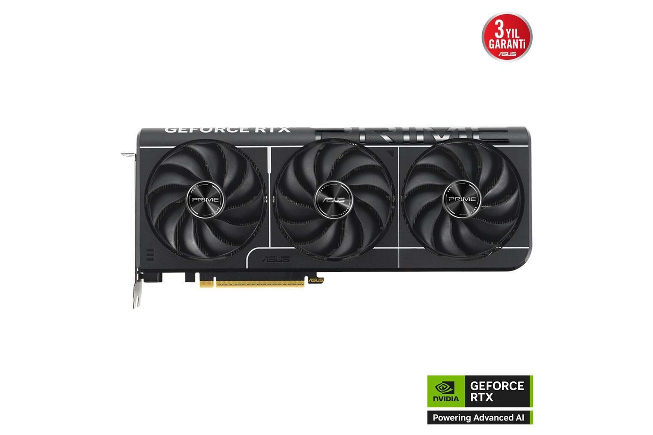 Prime GeForce RTX 5080, üç adet eksen teknolojili fanın ekran kartının yan havalandırmasından en iyi şekilde faydalanması ve en uygun termal performans sunması için özenle planlanmış koruma, soğutma bloğu ve ısı borusu düzeniyle 2,5 yuva yer kaplayan tasarıma sahip.