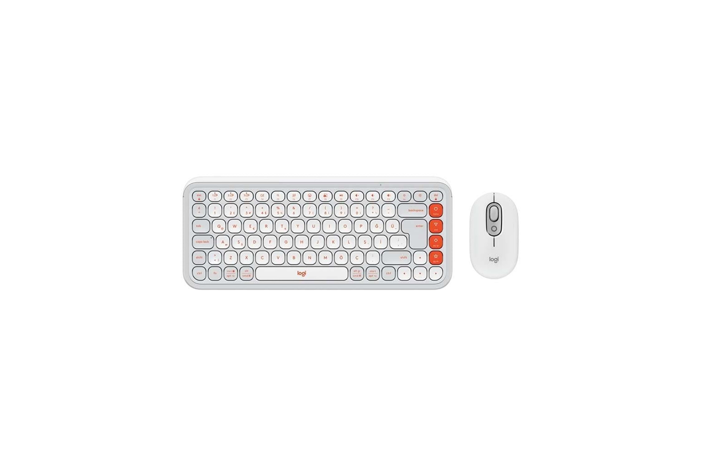 LOGITECH POP ICON COMBO, Beyaz-Turuncu, 920-013076, Kablosuz, Türkçe Q, Klavye Mouse Set