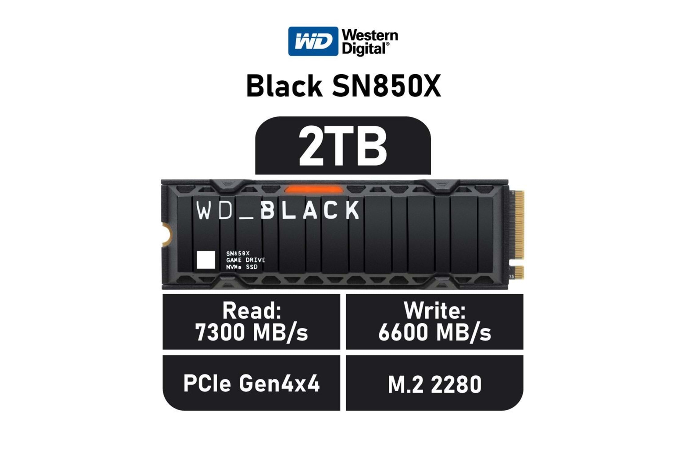 WD Black SN850X, WDS200T2XHE, 2TB, 7300/6600, Gen4, Soğutuculu, NVMe PCIe M.2 2280, SSD